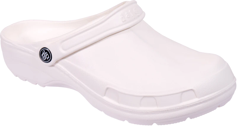 Сабо выполнены из пластиката белого цвета. Предназначены для работников пищевой промышленности и медицины.