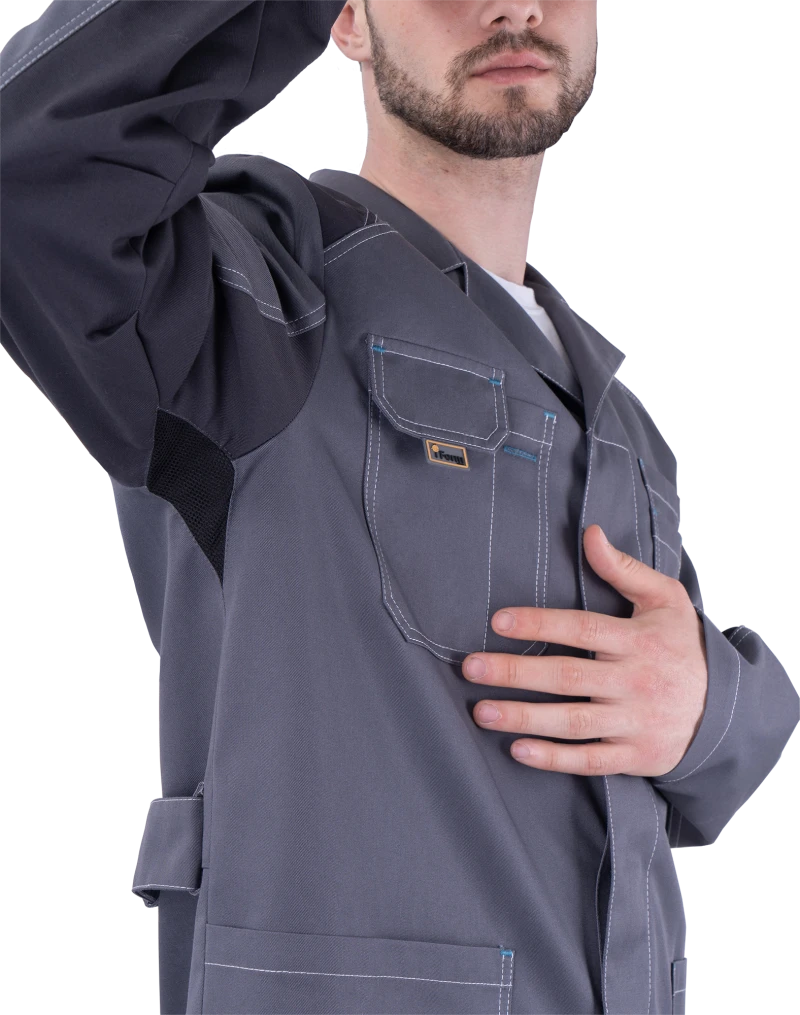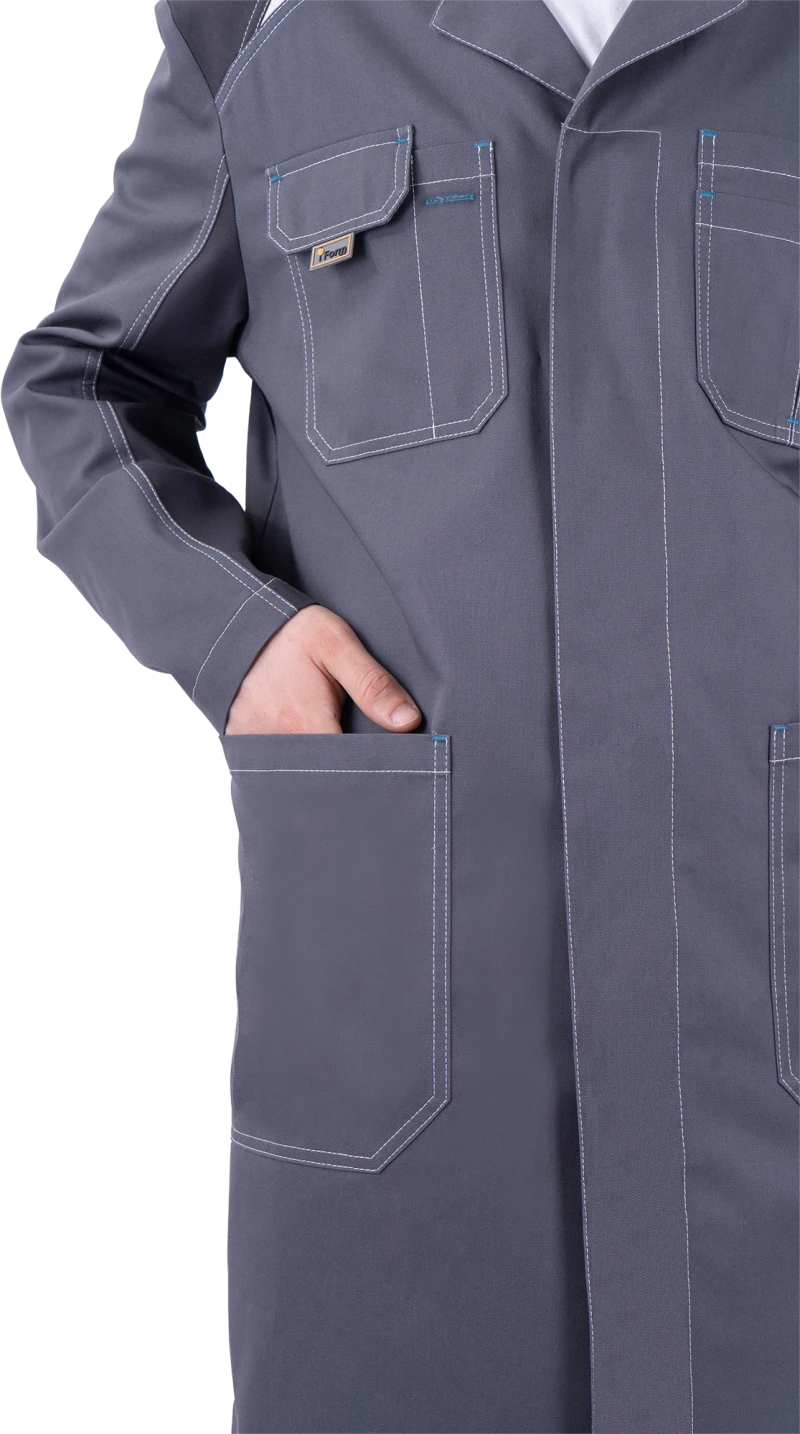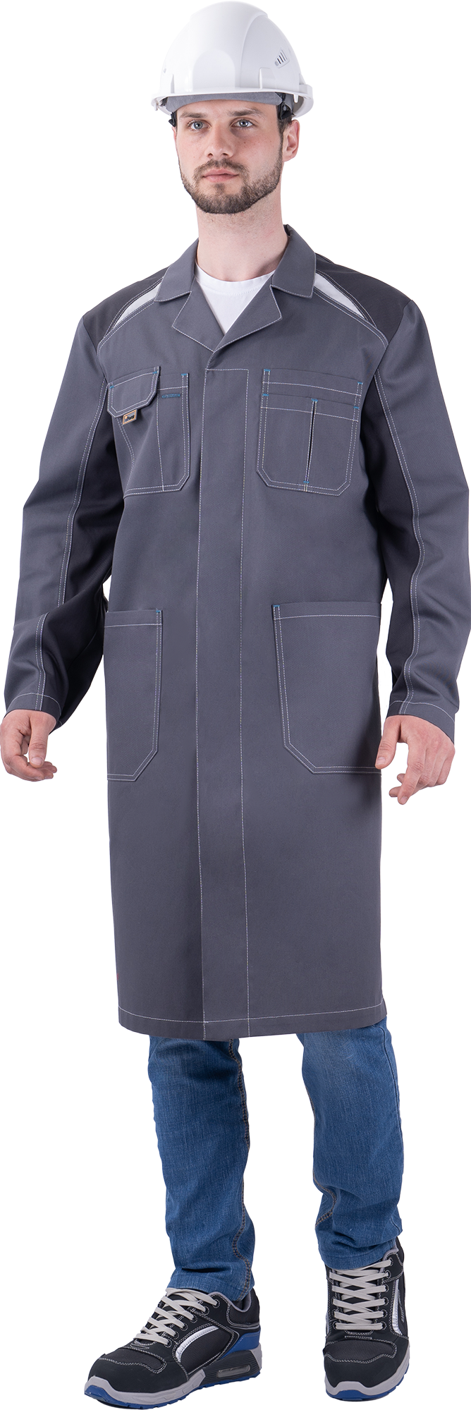 Халат мужской ТУРБО SAFETY от механических воздействий и ОПЗ, серый/темно-серый