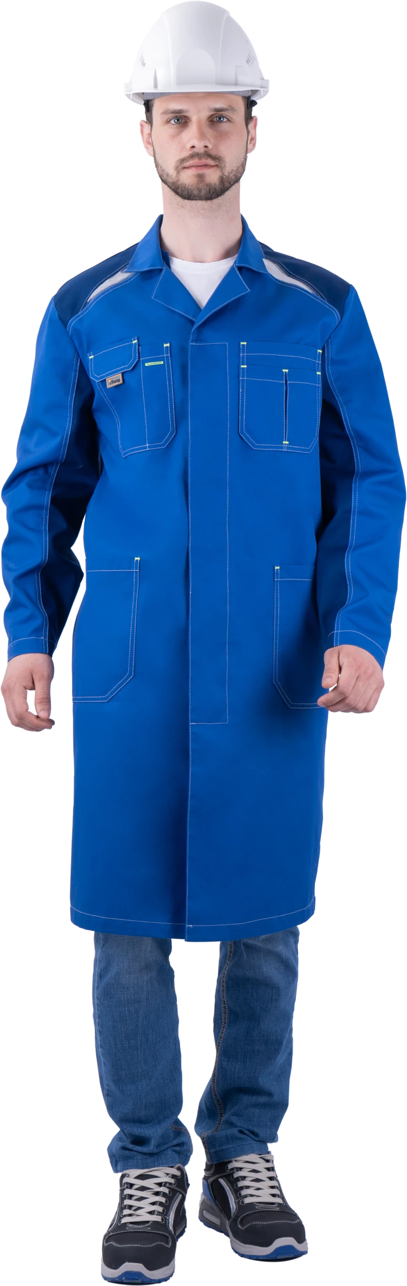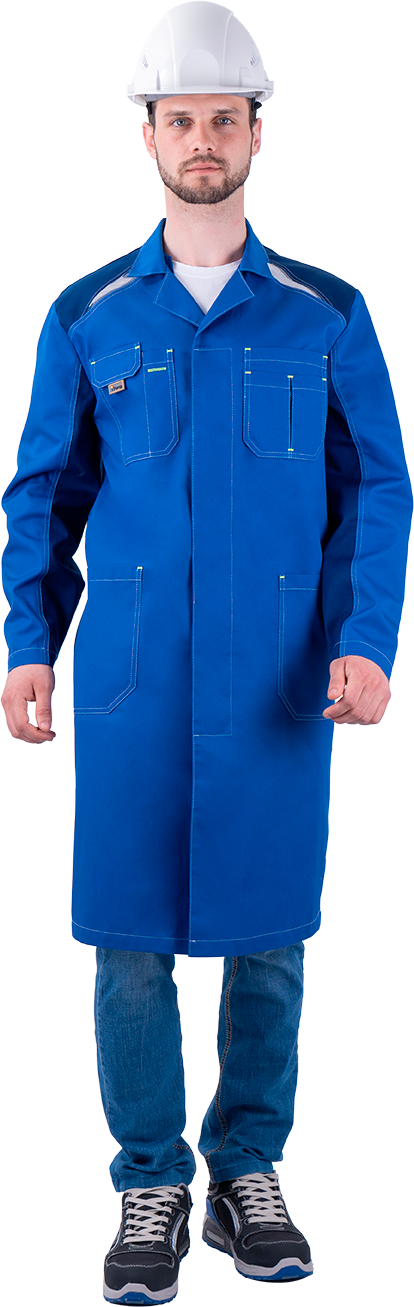Халат мужской ТУРБО SAFETY от механических воздействий и ОПЗ, василек/синий