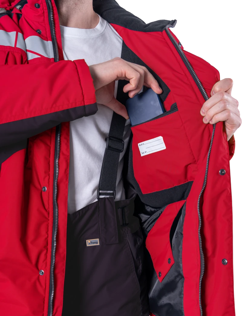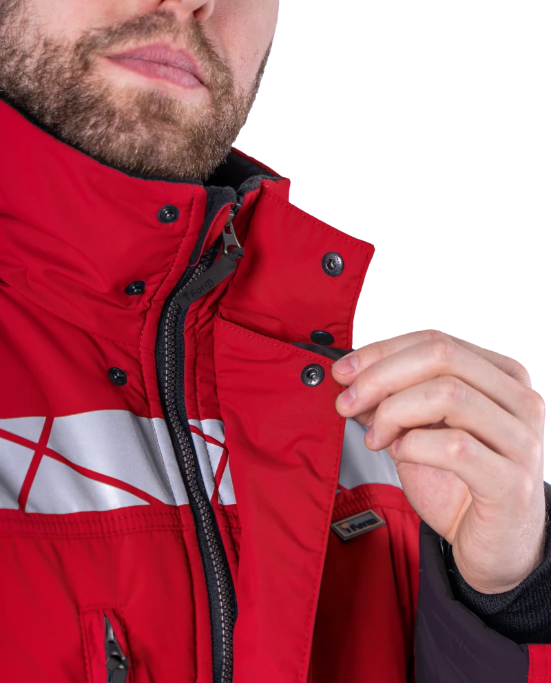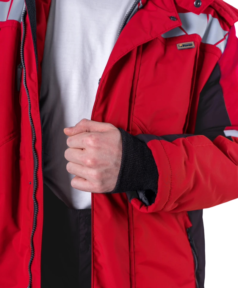 Куртка мужская ХАЙ-ТЕК SAFETY от пониженных температур воздуха и ветра, механических воздействий и ОПЗ, красный/черный