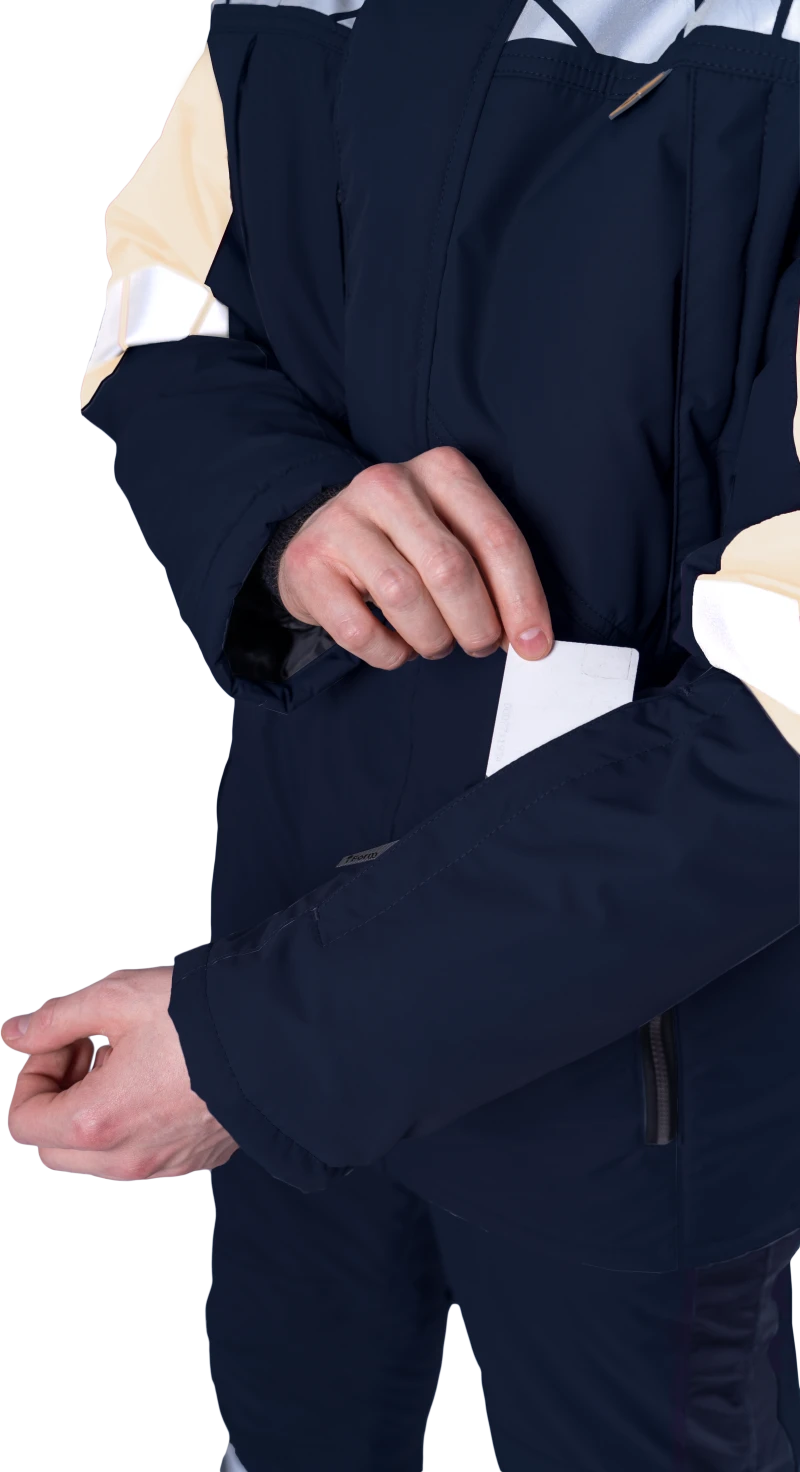 • шесть внешних карманов с застежкой на молнию: три нагрудных, два нижних, один на левом рукаве для пропуска
