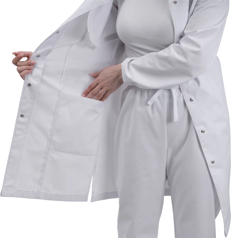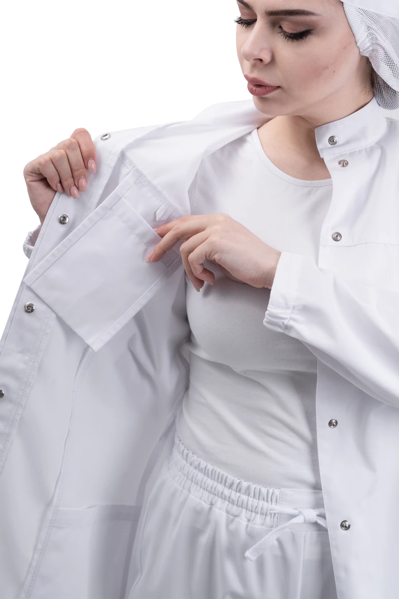 Халат женский АПРЕЛИЯ ХАССП от механических воздействий и ОПЗ, белый