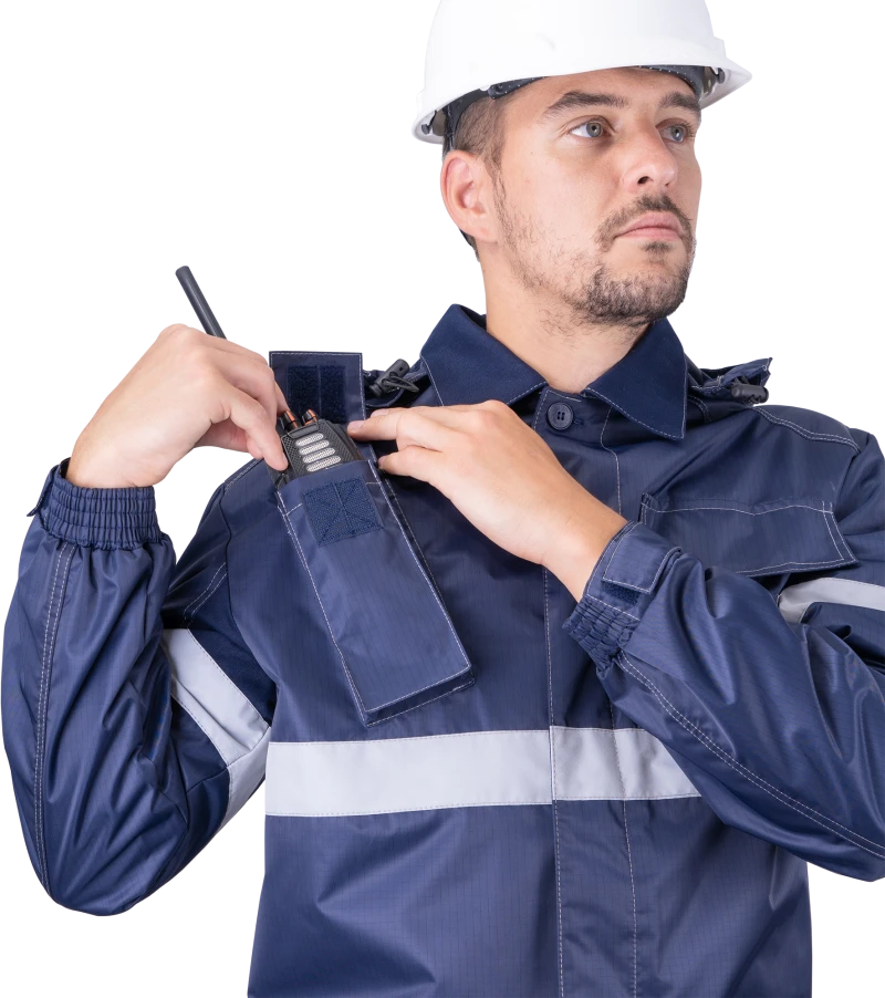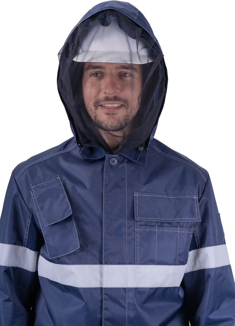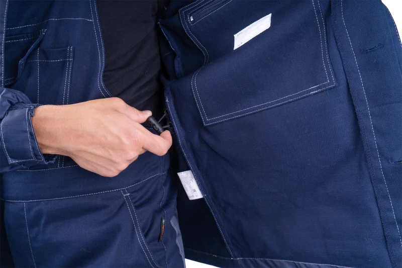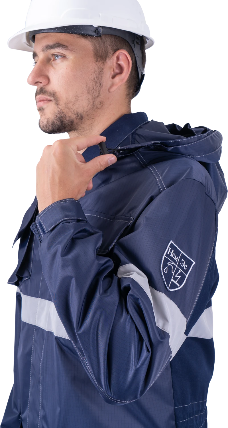 Ткань верха: Эксперт-Стандарт СА-25 с токопроводящей нитью, 80% хлопок, 20% полиэстера, пл. 250 г/м², отделка НМВО