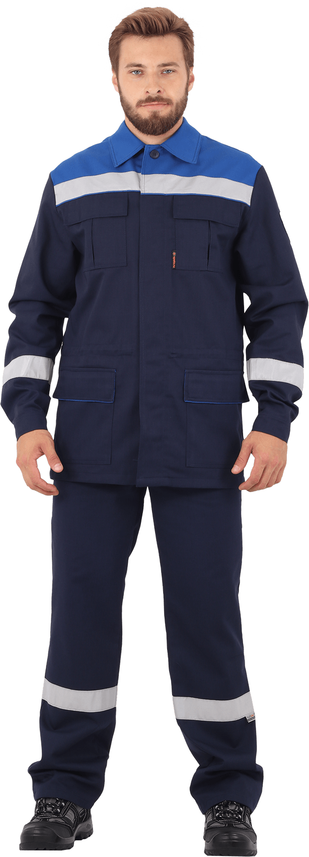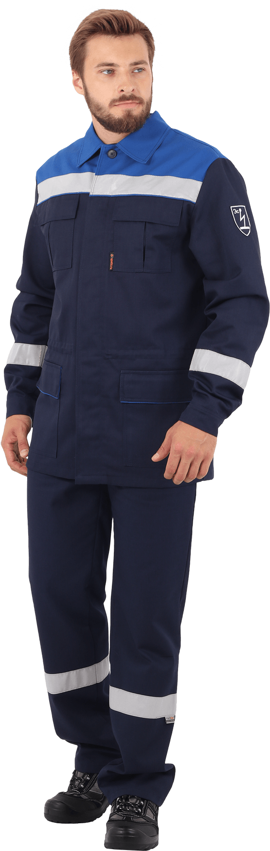 Костюм мужской АНТИСТАТ от механических воздействий и ОПЗ, от статического электричества (куртка, полукомбинезон), темно-синий/василёк