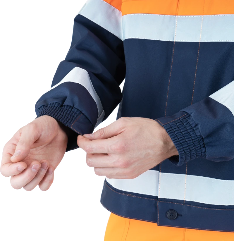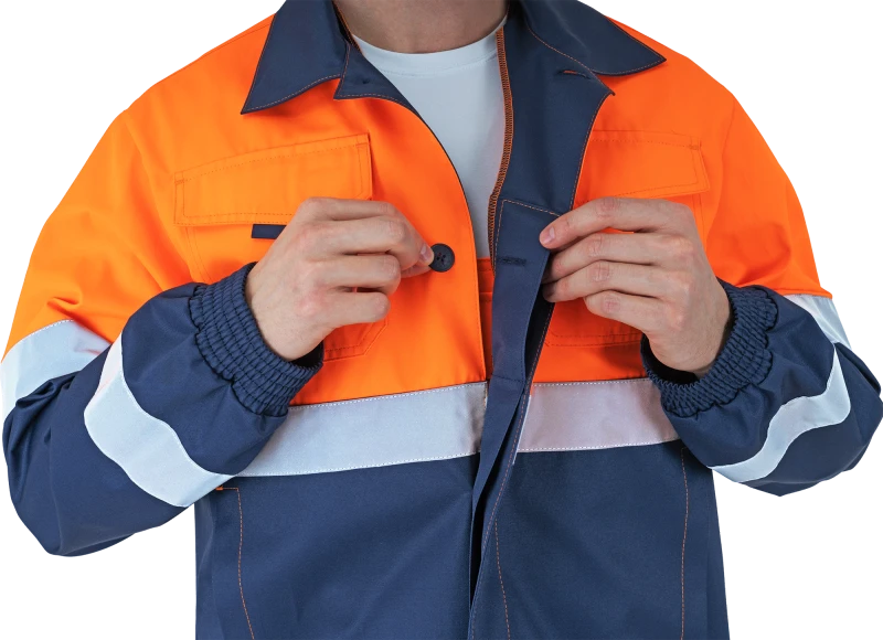 Костюм мужской БРАЙТ сигнальный, от механических воздействий и ОПЗ (куртка, полукомбинезон), флуоресцентный оранжевый/синий