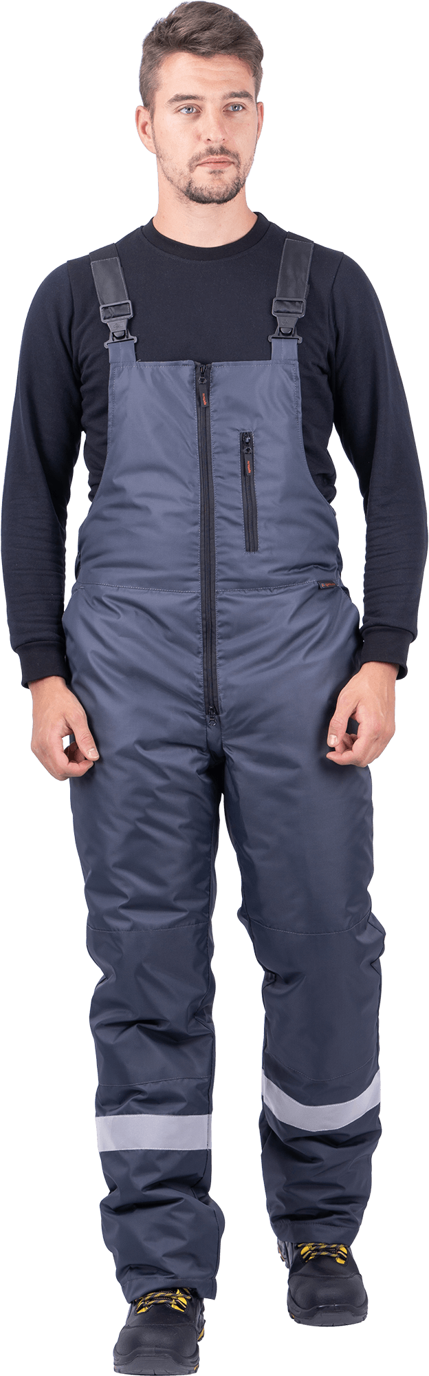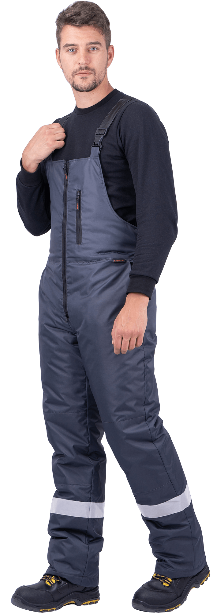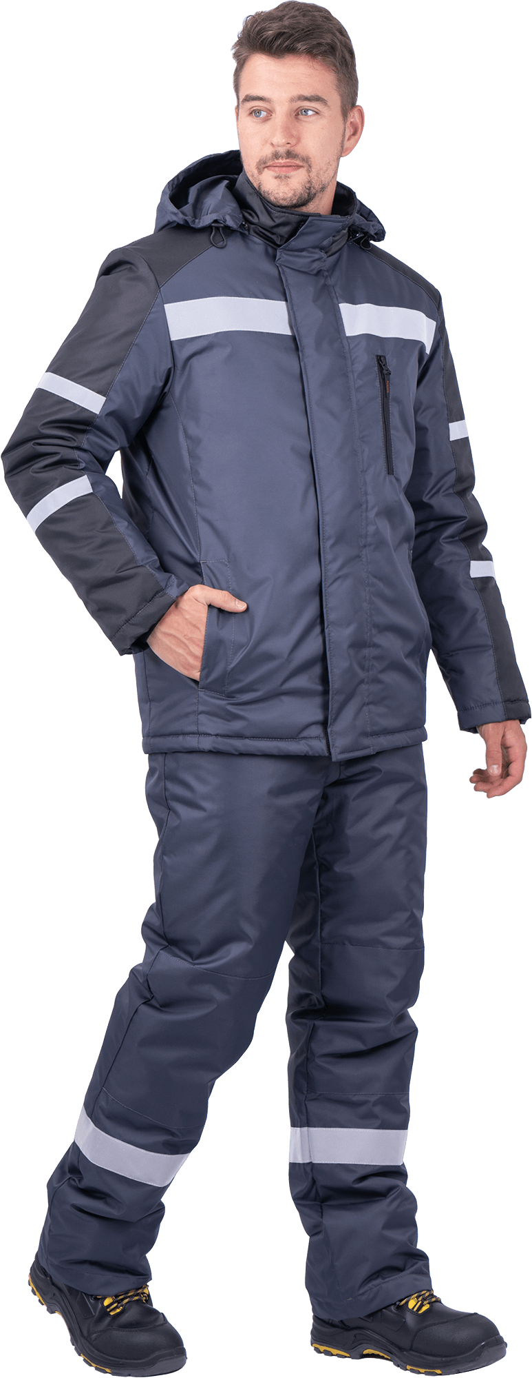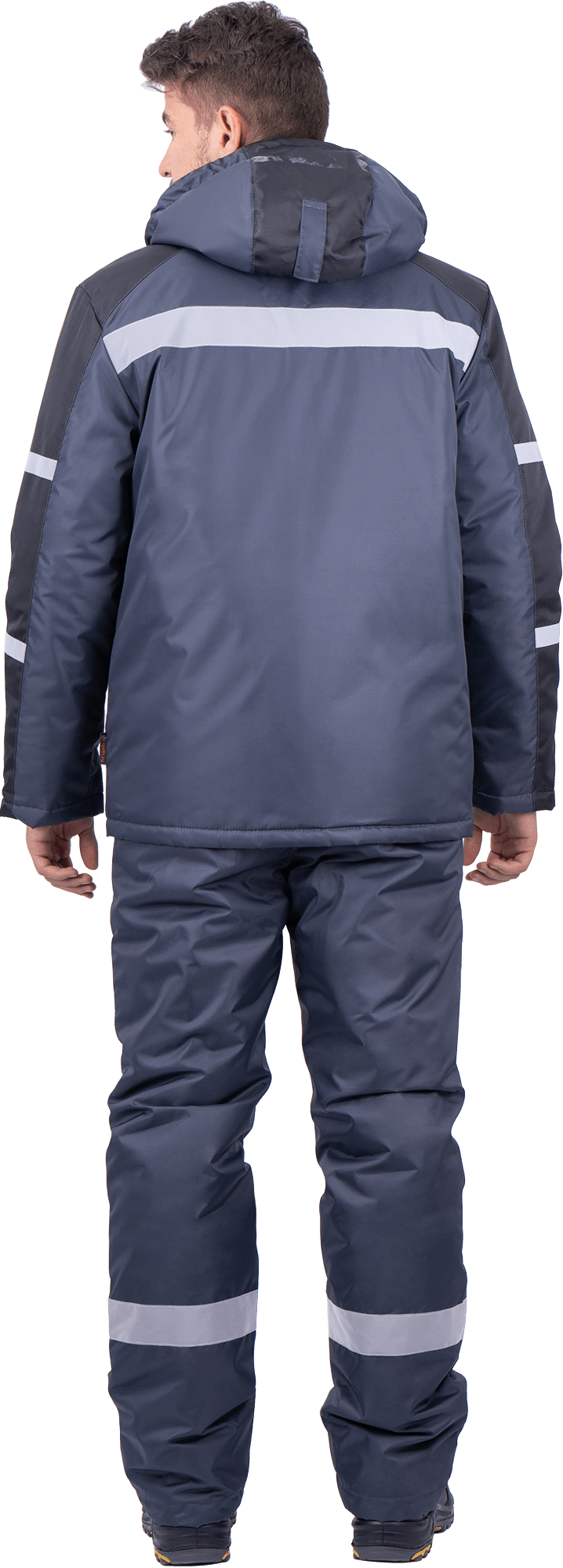 Ткань верха: «Оксфорд 240Т», PU-отделка Состав: 100% полиэфир, плотность 130 г/м² ТР ТС 019/2011 ГОСТ 12.4.303-2016 Защитные свойства: Тн - от пониженных температур воздуха и ветра, (1-2 класс защиты, I-II, III климатический пояс) Мп - от механических воздействий (прокол/порез) Ми - защита от механических воздействий (истираний) З - защита от общих производственных загрязнений Костюм состоит из куртки и полукомбинезона. Куртка: • центральная застежка на молнию • ветрозащитная планка с текстильной застежкой • воротник-стойка • нагрудный карман с застежкой-молнией • нижние карманы с листочкой • внутренний карман • внизу рукава внутренняя трикотажная манжета • пристегивающийся капюшон на молнии с регулировкой объёма • световозвращающие полосы по линии кокетки полочки, спинки шириной 50 мм, по рукавам – 25 мм Полукомбинезон: • застёжка на двухзамковую молнию • бретели с эластичной тесьмой и с застёжкой на фастексы • объём спинки регулируется по линии талии эластичной лентой • боковые карманы с наклонным вход