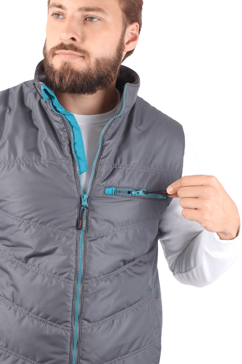 Жилет мужской ГАЛАКТИКА утепленный, серый/бирюза