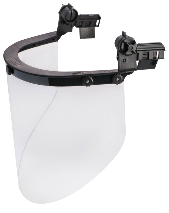 крепление щитка к защитной каске осуществляется за счет поворотно-фиксирующего устройства, изготовленного из холодо- и термостойкого материала, устойчивого к износу и гарантирующего надёжную фиксацию лицевого щитка в двух положениях “вверх-вниз”;